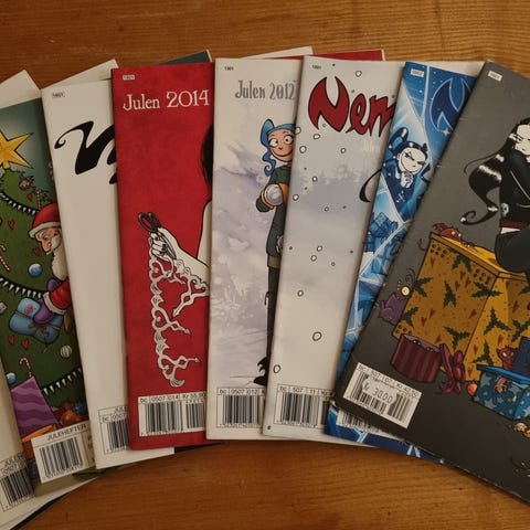 Nemi julehefter fra -02, -03, -04, -06, -07, -08, -09, -10 og -11. Det er to eksemplarer av utgave fra -06 og -08-10. Bladene er i svært god stand. Pris kan diskuteres!