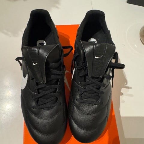 Nike Premier II FG fotballsko i størrelse 42. Fargene er svart med hvite detaljer. Laget i skinnmateriale. Designet for fotball med FG (firm ground) knotter for bruk på gressbaner.