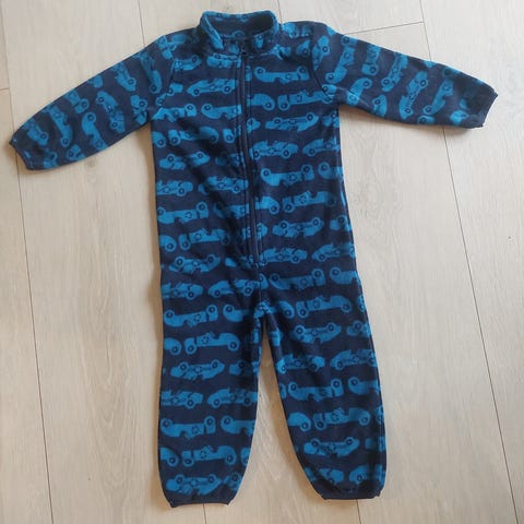Name it Fleeceheldress for barn i størrelse 92, unisex. Laget av fleece materiale i brun farge med svart sommerfuglprint. Helt heldress med glidelås foran for enkel påkledning.