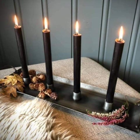 Tøff og stilren adventsstake med plass til årstidens pynt.Flott på hytta eller hjemme.Håndlaget Smijern.Kan sendes for 79 kr om ønskelig