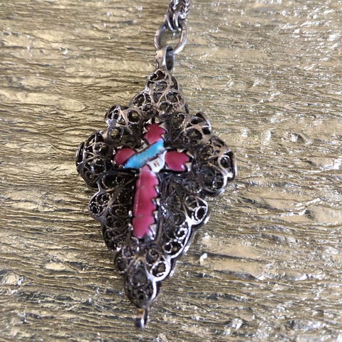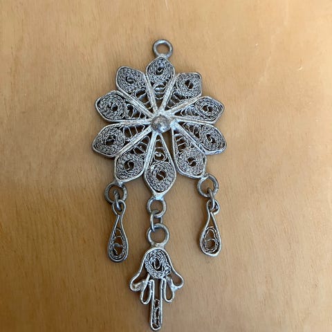 Ca 6,2 x 3 cm, lengde kjede 60 cm.
