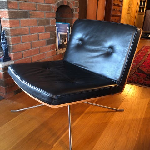 Elegant Kontor Stol i sort skinn -med lekre detaljer -selges billig.