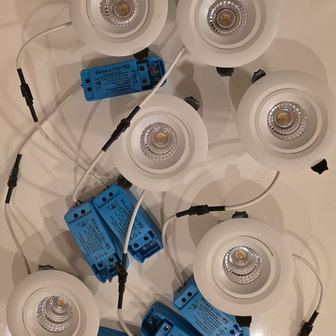 Namron halogenlys 2 stk som nye , aldri brukt , installert men ikke brukt på grunn av feil farge.