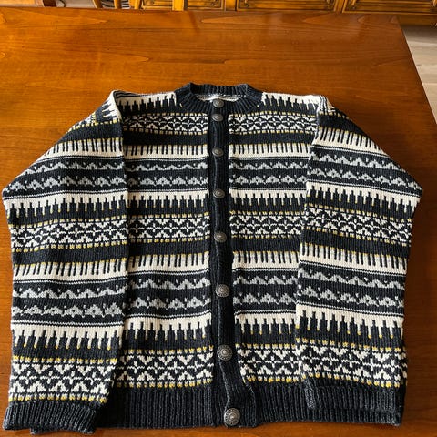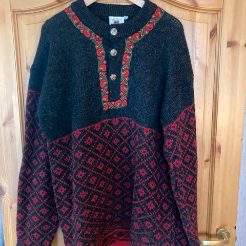Genser i størrelse L for menn, farge beige.Hjemmestrikket - nesten ikke brukt siden den ble for stor.