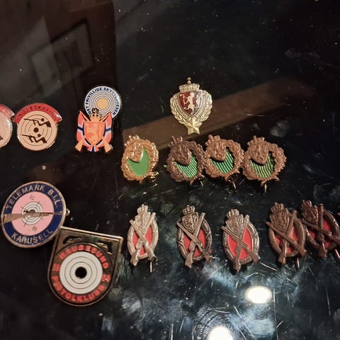 2 stk Infanteri 2 stk skarpskytter dugleiksmerke og skytternål, ellers se bilder. Kr. 670-. inkludert porto kr 70-. med PostNord.