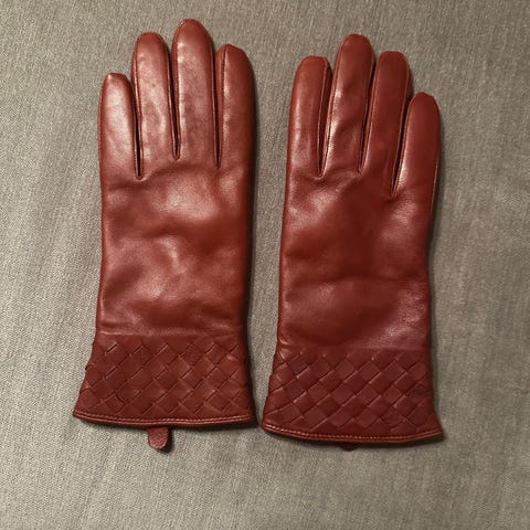 Selger et par lekre damehansker i skinn.