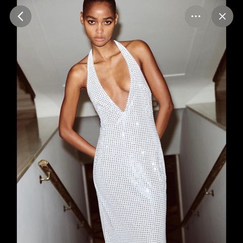 Ny Zara festkjole i størrelse M, laget av paljetter i sølvfarge.