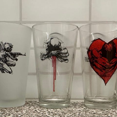 3 stk håndgraverte drikkeglass (0.5l) med klassisk hellfire club motiv!