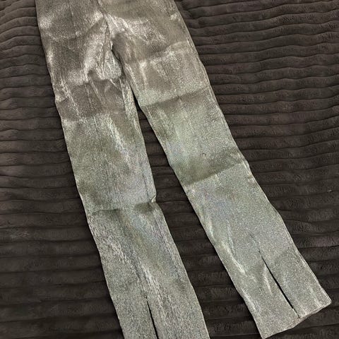 Kule sølvbukser i str 40. Kjøpt her på Tise, kun brukt en gang av forrige eier. Kun prøvd på av meg. Fine til julebord eller nyttårsaften! Behagelige på.