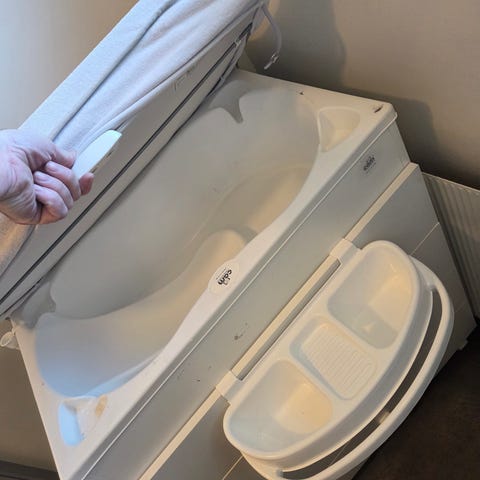 Praktisk Bébé-jou badekar og badekarstativ som kan brukes fra nyfødt opp til 18kg.