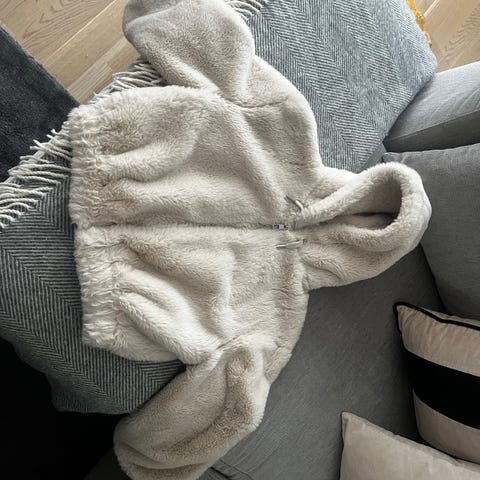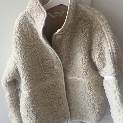 Teddy jakke fersken farget i størrelse 134. Jakken har en myk tekstur og er egnet for barn i alderen 8-10 år. Materialet gir varme og komfort, og plagget har en enkel design uten hette.Helt ny med lappen på.