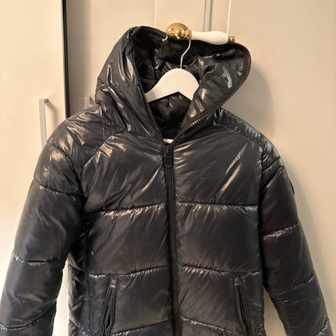 Save The Duck Vinterjakke for kvinner i størrelse S. Jakken er svart og laget av polyester. Den har en polstret design som gir isolasjon og varme, egnet for vinterbruk. Den er kjøpt i vinter 2023 og har ingen synlige bruksmerker. Perfekt for å kjøre slalom eller være ute i kulde:)