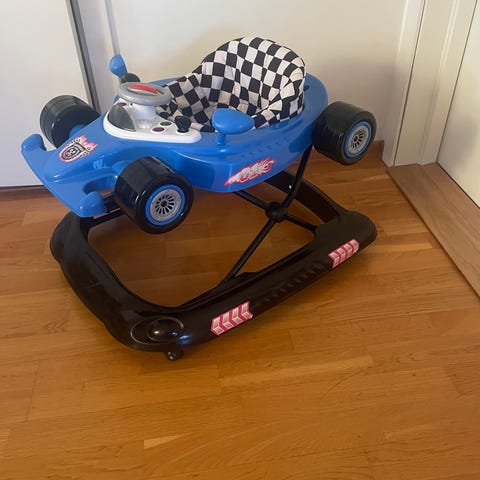 Among Us barnevogn gåbil i gul farge med sjakkmønstret sete. Egnet for små barn til innendørs og utendørs bruk. Laget av plastmateriale med fire hjul for stabilitet og enkel bevegelse.