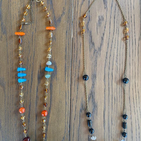 Unikt og fargerikt perlekjede med blomsterdetaljer og anheng. Et dekorativt smykke med boho-preg som passer fint til sommer, fest eller som et fargerikt innslag til et enkelt antrekk.