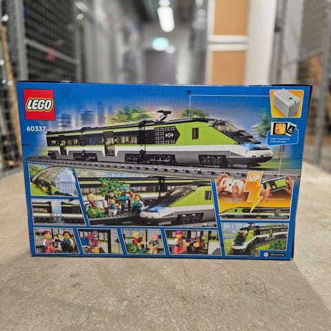 LEGO® City Ekspresstog (60337) inkluderer et fjernstyrt lyntog-lokomotiv med fungerende, dimbare lys og LEGO Powered Up-teknologi, restaurantvogn, passasjervogn, perrong, 24 skinneelementer og seks minifigurer. Settet byr på timevis med gøyal rollelek med togtema.