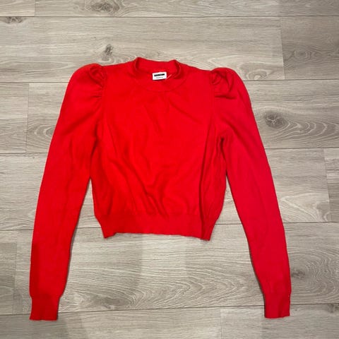 Fargerik topp i oransje farge, gjennomsiktig og elastisk.