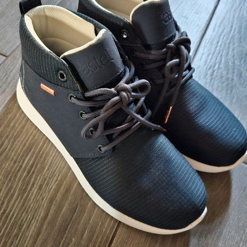 Skoene er lite brukt og er hele og uten synlig slitasje, men de er brukt en kort periode. Det var var vanskelig å få fine bilder, men de er blå og rene, selv om de ikke ser slik ut på bilde.