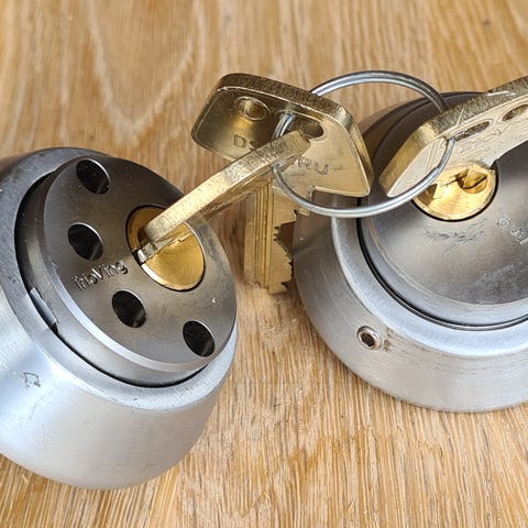 Pent brukt, men har noen bruksmerker. Lås medfølger, men ikke dørhåndtak