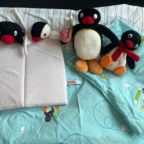 Pingu sengesett, dynetrekk 80x100 +putetrekk. +La bebe Selges tilsammen. Kr 100 MUMIN ER SOLGT.