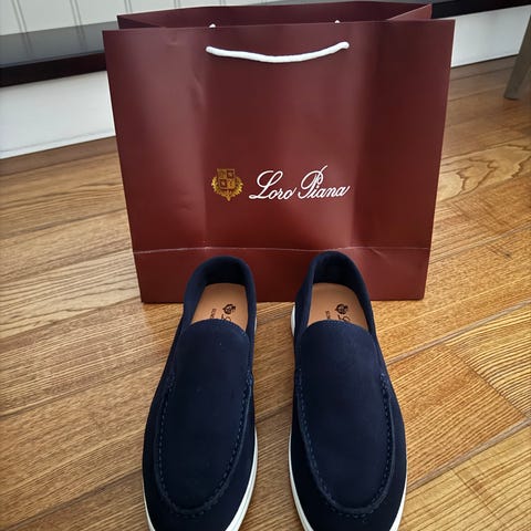 Skoene er foret samt det medfølger såler i lammeull originalt fra Loro Piana. Meget komfortable.