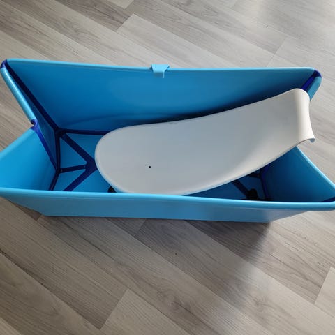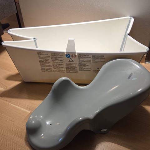 Stokke badebalje med nyfødtstøtte, kun brukt et par ganger med kun vann (ingen såpe eller olje brukt oppi).