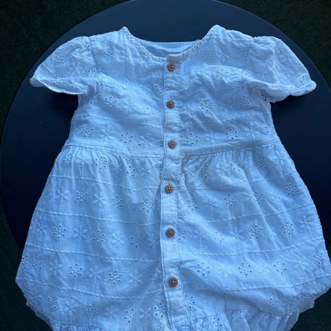 Selger pent brukt hvit kjole med truse til i str 68. Er fra H&M. Ingen feil eller anmerkninger som jeg kan se. Røyke- og dyrefritt hjem. Spør hvis du lurer på noe. Se gjerne finn-brukeren min for flere annonser.