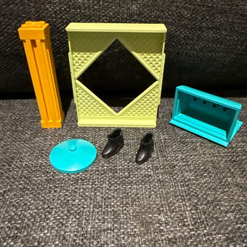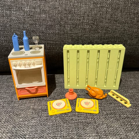 Mangler matskålene fant en annen som kan brukes som matskål. Mangler også pølsene.
