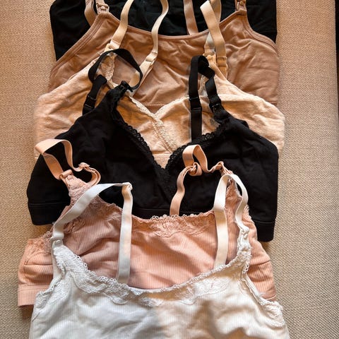 Det finnes 3 stk. i hvit farge og 3 stik. i svart farge til både BH og singlet. Dvs. at det er 12 stk totalt.