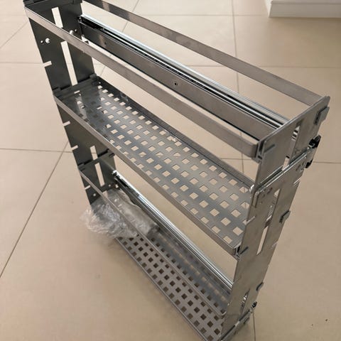 Settes inn i kjøkkenskap, du kan dra den ut og snu den. Aldri brukt.
