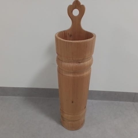 Telefonstøtte i Eik som kan slås sammen og puttes i bag/veske. Har spor for kabel både under telefon og fra bak