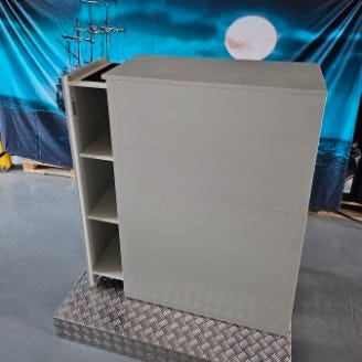 Pent brukt. Er gjort smalere enn hva den var opprinnelig. Men funker helt flott. Brukt i en bedrift. Er noe riper i denne sorte hyllen på toppen.
