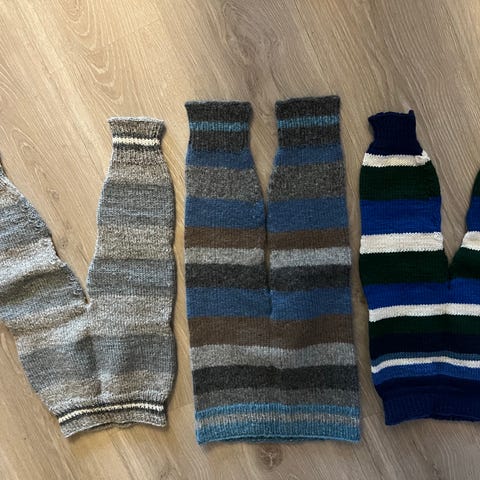 Hjemmestrikket og pent brukt. Ca str 6mnd til 1 år. Noe kan sikkert brukes lengre en 1 år.
