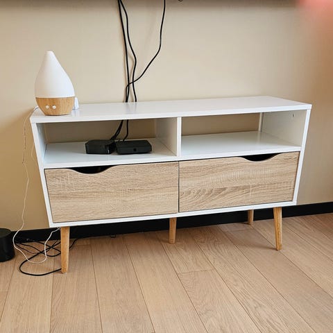 Det er hjul under dette TV bordet