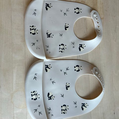 Silikon smekker, liknende Liewood sine. Så vidt brukt et par ganger, er som nye.