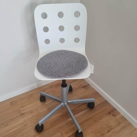 Enkel, grå kontorstol til barnerom eller hjemmekontor som ikke skal gjøre så mye utav seg.