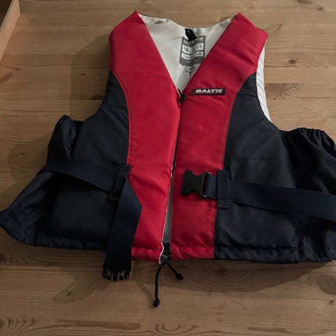 2 av vestene er redningsselskapets, patronene som står i må nok byttes. Båten er solgt, derav vest salg.