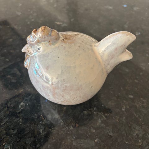 Håndlagde keramikkhøner i fire forskjellige størrelser og farger.