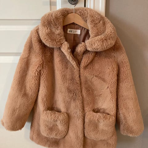 H&M Beige Jakke for barn i størrelse 104. Jakken har en myk og varm både på utsiden og innsiden, med knappelukking foran og en krage som gir ekstra beskyttelse mot kulde. Selges for 100kr