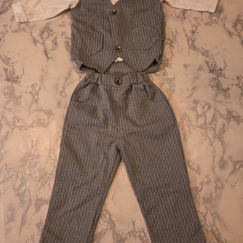 Komplett festantrekk til gutt i str.110 -Kun prøvd på! Merke ukjent, fått i gave. Tynt og deilig stoff.