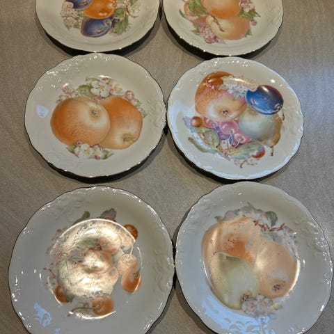 Selger 11 stk. frukttallerker og 1 serveringsfat. Selges samlet kr. 300,-.