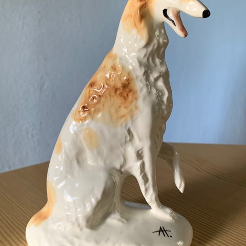 Arcadia Porcelain Figurine Bambi hjort laget av porselen med hvit og gulldekor. Figuren er laget i Italia og har detaljer i 24 karat gull, se bilde av tekst under. Passer som dekorasjon i hjemmet. Størrelse ca. 25 x 25 cm. Selges rimelig pga. et lite skår bak det ene øret, se bilde. Kan dessverre ikke sendes.