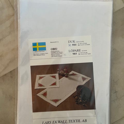 Jeg tilbyr et nytt sett for broderi av en festlig bordløper (julemotiv).