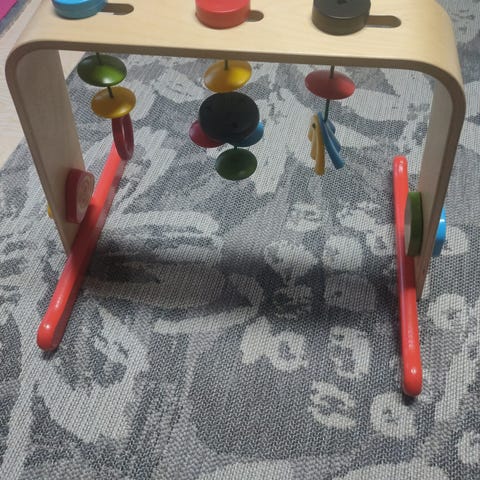 BRIO lekestativ i tre designet for barn. Lekestativet har fargerike detaljer i rød, blå, gul og grønn, og er laget av naturlig tremateriale. Passer for små barn og kan brukes til motorisk lek og utvikling.