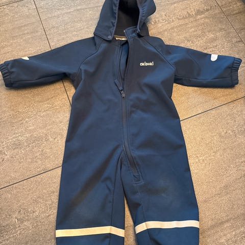 Pent brukt dress. Usikker på merket, kjøpt i Sverige. Det er veldig god bevegelighet i den, perfekt for barn som krabber. Sitter godt på barnet. Er impregnert, men er ikke like vanntett som regntøy. Vindtett.