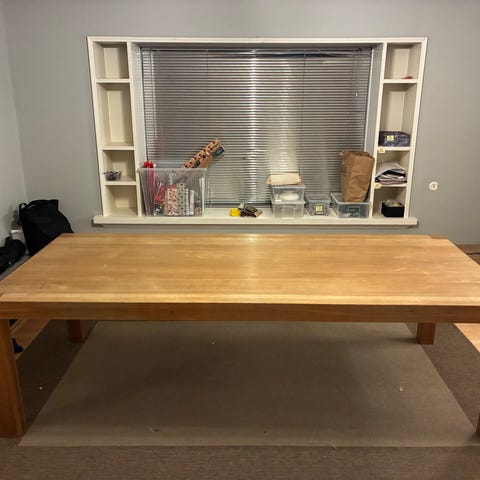 Selger dette flotte kanadiske furu-spisebordet vårt! Vi kjøpte det i januar 2024, og det er pent brukt. Bordbena er kjøpt på metallbordben.no og er i stål. Bordflaten er oljet en gang med Osmo i fargen Hvit (3111).