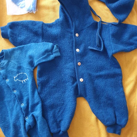 Blå, myk og varm vogndress / utedress til baby ca. 6mnd. selges.