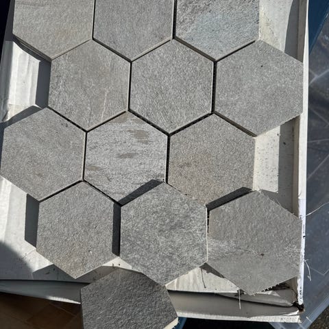 Én pakke Nordic Stone Islanda Mosaikkflis 5x5 fra Italgraniti. Kjøpt på Flisekompaniet for 3000,-. Selges for 1400,-. Én pakke tilsvarer 1,08m²