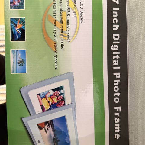 Digital bilderamme fra Denver, med strømkabel og uttak til minnebrikker/minnepenn☺️