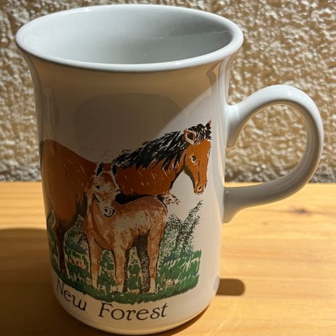 gibsons england vintage mugge tekanne hestesko motiv jaktmotiv hestemotiv kaffekanne landsbymotiv retro porselen keramikk samler objekt britisk dekor 50 talls 60 talls pynt gammel engelsk mugge hest