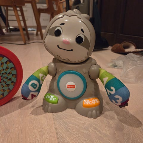 Pent brukt Fisher-Price linkimals Koala musikkeleke med lys og lydfunksjoner. Leken har fargerike knapper og er designet for små barn. Laget av plastmateriale, med en høyde som passer for barn å holde og leke med. Passer for barn i tidlig alder for å stimulere sansene og motoriske ferdigheter.